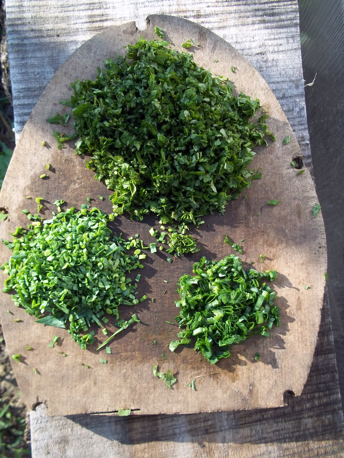 На фото: крапива, листья чеснока, перья зеленого лука (в порядке убывания количества)