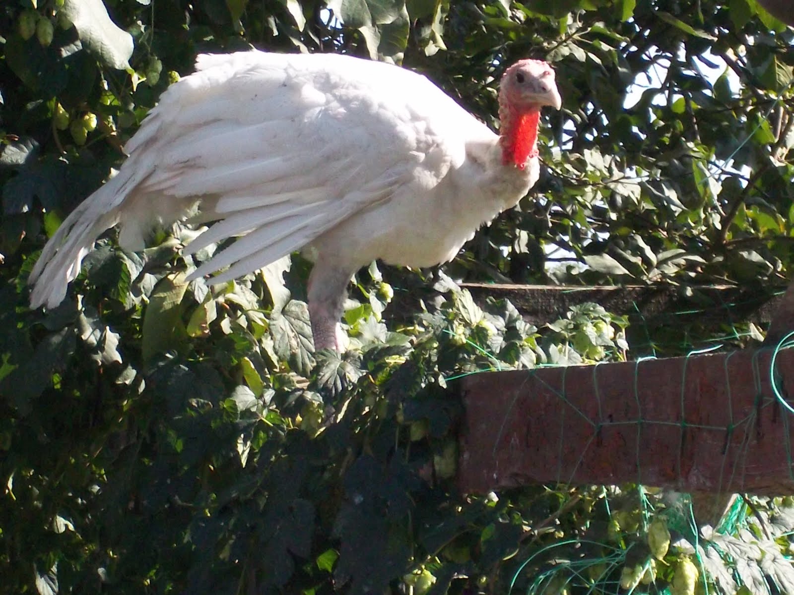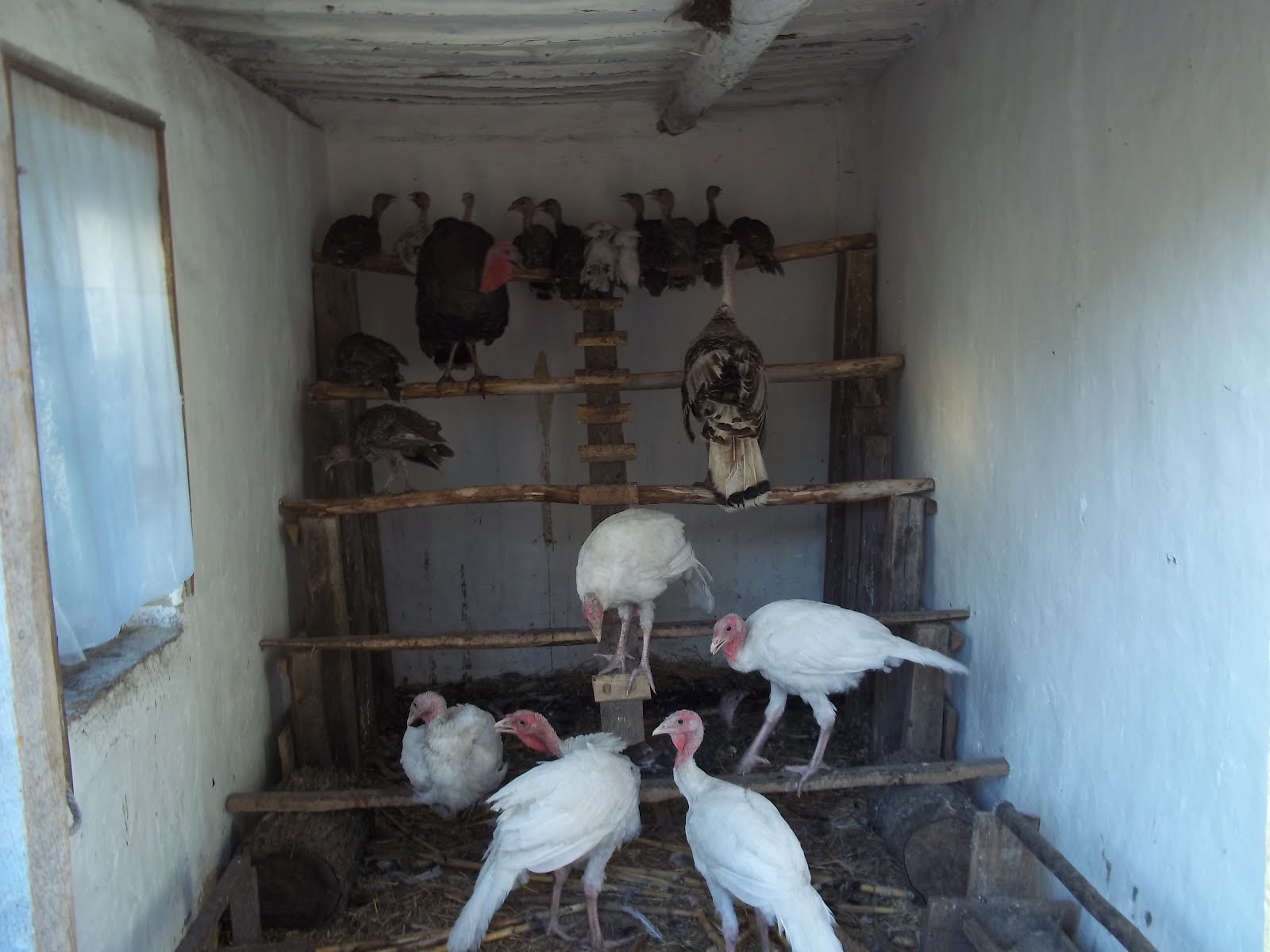 (на втором фото, на заднем плане видна индюшка — приемная мама бройлерных индюков. Индюшата уже переросли свою маму)